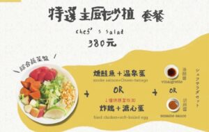 提供炸雞/燻鮭魚 擇一的主食 搭配清爽蔬菜!注重健康的你看過來!看似簡單的一盤沙拉,背後是隨季節調整食材、特別拿捏適當份量的用心。避免精緻澱粉,選用地瓜或馬鈴薯,既能攝取充足碳水化合物,也能有滿滿飽足感。